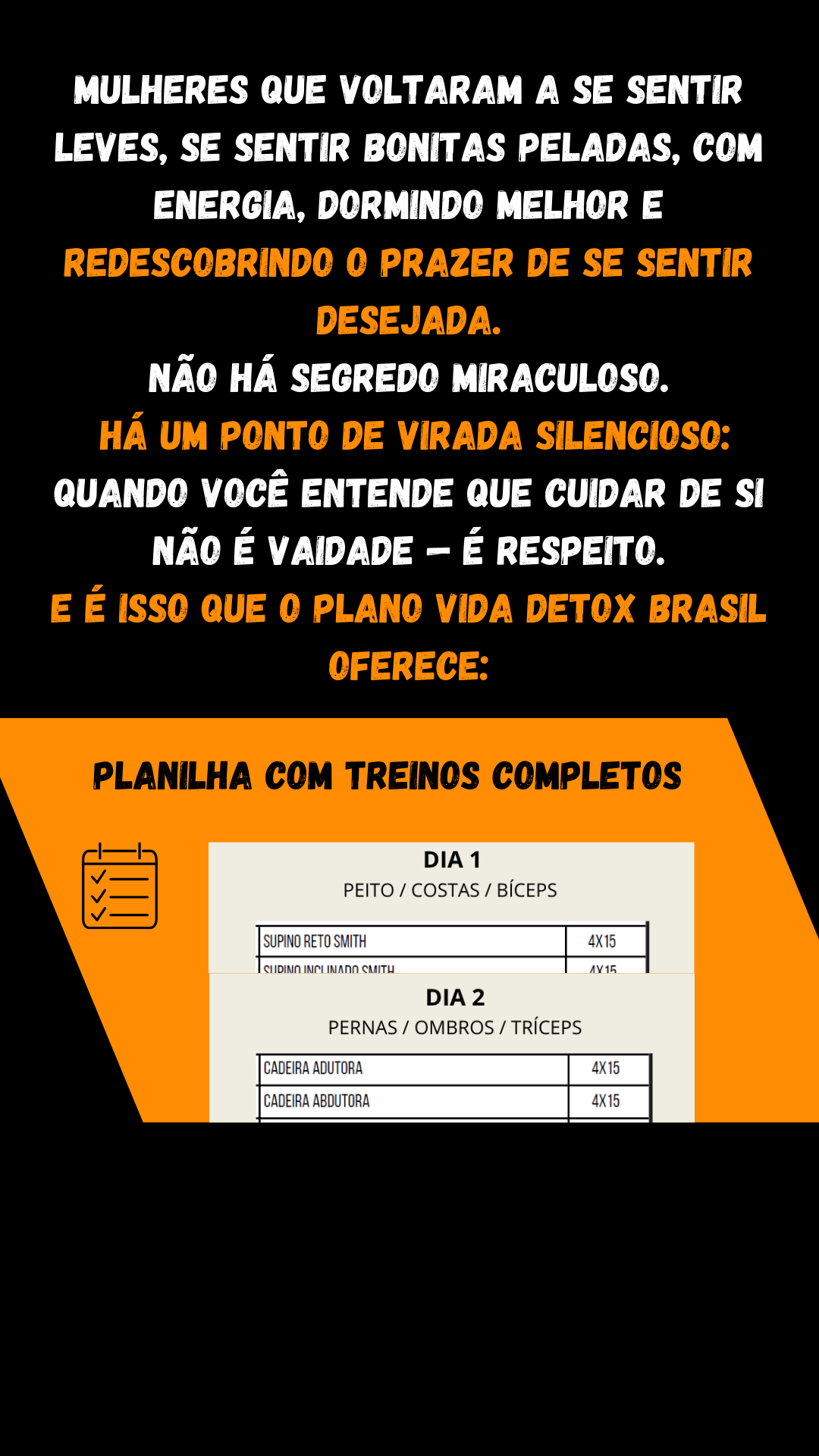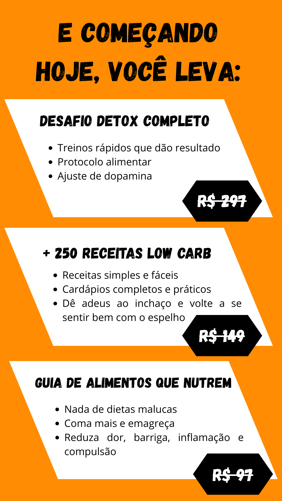 Você receberá um plano de 21 dias, mas já nos 3 primeiros dias seu corpo começa a mudar e com 7 dias você já vê os primeiros resultados
